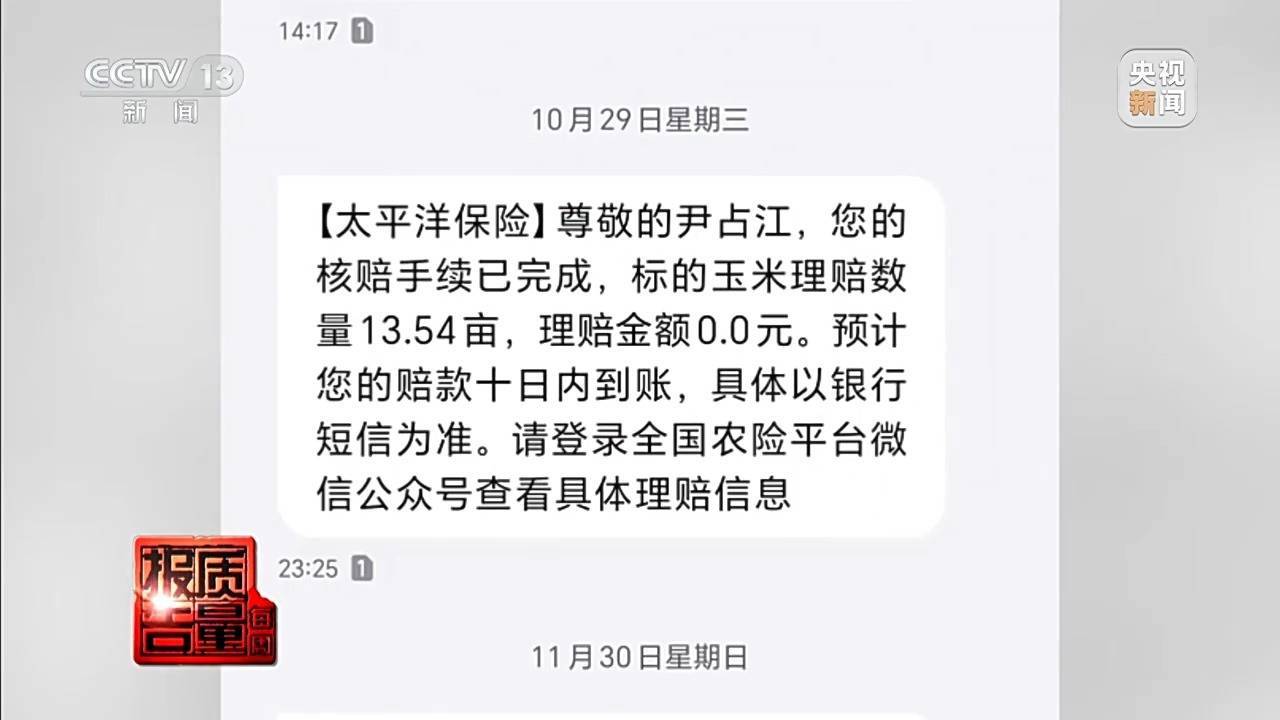2025年10月21日,尹占江收到了太平洋产险转入的玉米理赔款4399.15元。8天后,也就是10月29日,他收到短信求教,内容知道玉米核赔手续已完成,理赔面积为13.54亩、理赔金额为0.0元。保障公司认定的受灾亩数和理赔金额与尹占江我方认为的受灾耗费存在较大差距。