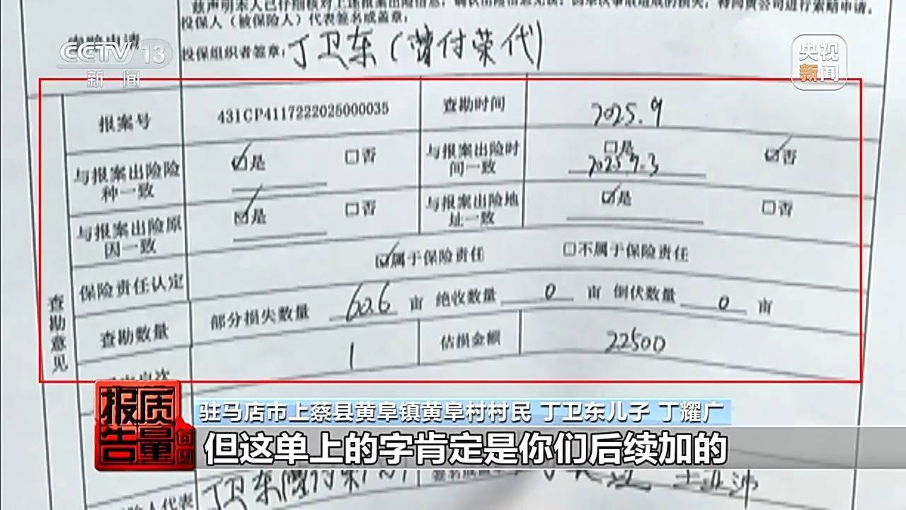 rrrr记者在调检讨望中发现,尹占江的遇到并非个例。河南省驻马店市上蔡县种粮大户丁卫东2025年玉米投保理赔时也出现了不决损就署名的情况。他投保的是华夏农业保障股份有限公司河南省中央财政玉米都备资本保障。