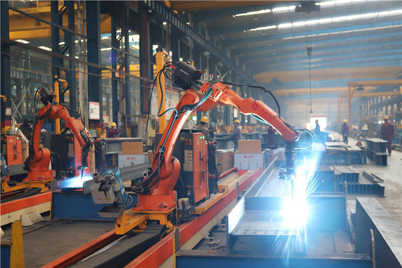 涡阳鸿路钢构公司机器东谈主正在焊合钢构件。亳州市委宣传部供图